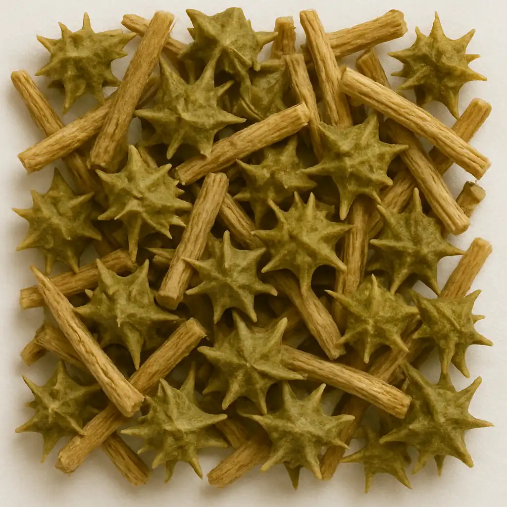 Gokshura is a flowering plant traditionally valued in herbal medicine, especially for its benefits on the urinary and reproductive systems. It belongs to the Caltrop family, and its name comes from Sanskrit—‘Go’ meaning cow and ‘Akshura’ meaning hoof—because its fruit resembles the shape of a cow’s hoof. The fruit of Gokshura is commonly used in forms such as dried pieces and powder.