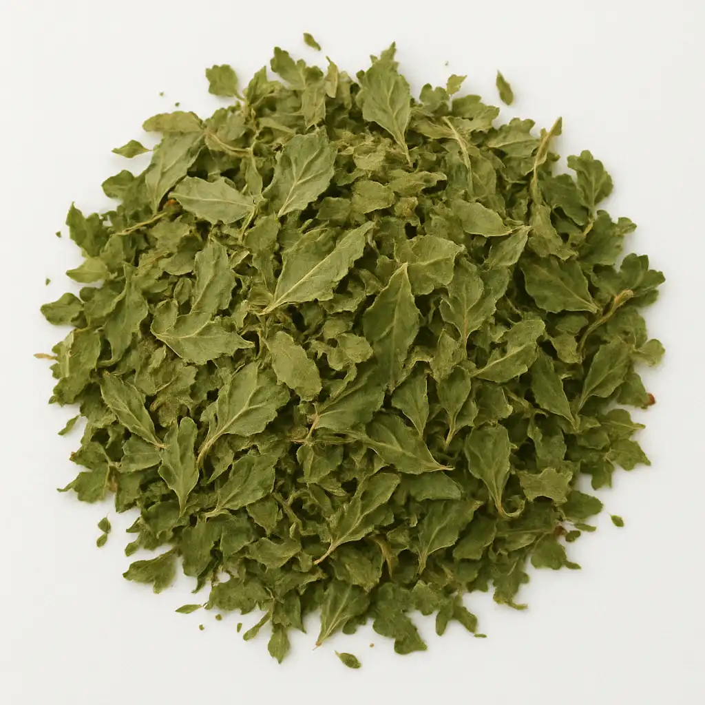 Tulsi, also known as Holy Basil or Tulasi, is an aromatic perennial herb from the Lamiaceae family, native to India. It is traditionally cultivated for its religious significance, medicinal value, and essential oil. Widely consumed as an herbal tea and a key herb in Ayurveda, Tulsi is valued for its wide range of potential health benefits. Its leaves, which may be green or purple depending on the variety, have a strong, distinctive flavor. Tulsi is believed to possess adaptogenic, antioxidant, anti-inflammatory, antibacterial, antiviral, and immune-supporting properties.